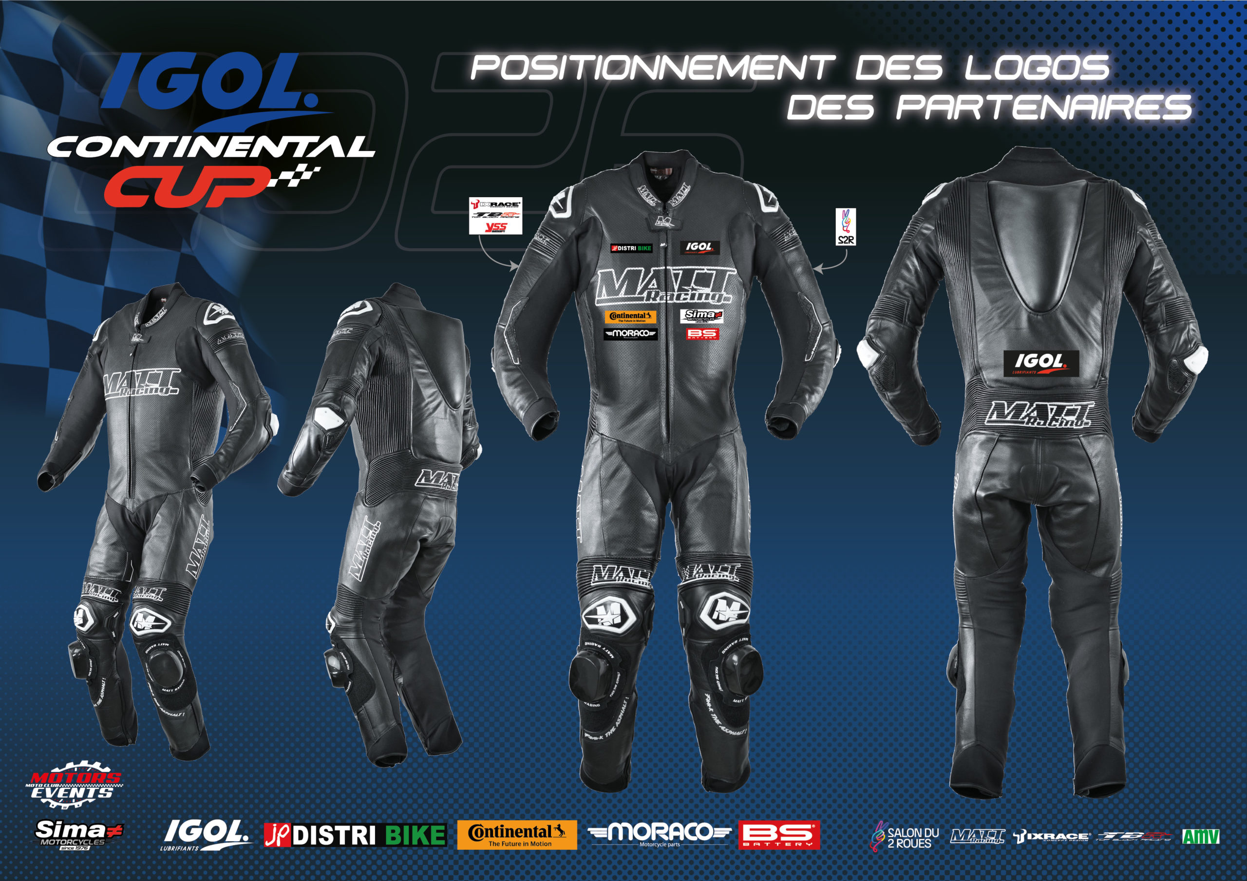 Les 5 partenaires de l’Igol Continental Cup sont représentés sur les motos des pilotes par des stickers mais aussi sur leur tenue.